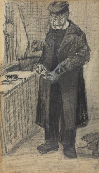 Curator: Alright, let’s talk about this compelling portrait. Lovis Corinth painted "Franz Heinrich Corinth, the Artist’s Father" in 1888, using oil paint with an impasto technique, which is quite apparent in the textured brushstrokes. What are your initial thoughts on it? Editor: Intimate, but somewhat melancholy. The colors are muted, almost earthen, yet his father's gaze feels direct, assessing. I wonder what their relationship was like. It definitely isn’t your run-of-the-mill proud father portrait; there’s something a bit… haunted in his eyes. Curator: That sense of melancholy you're picking up might stem from Corinth's later artistic inclinations. Even this early work hints at the German Expressionist style he’d become known for—anxiety, inner turmoil rendered visually. And father portraits, especially from artists just finding their style, often hold layers of personal reckoning. Editor: Exactly! And the way the light falls, or rather doesn't, it adds to that sense. It’s not a flattering light; it reveals every line and crease. He’s captured the man, not just an image of the man, and maybe even their dynamic. Notice his hands? They're sort of gripping the paper. It’s tense, not relaxed. Curator: The hands, yes, a site of complex symbolism. Consider the societal expectations placed on fathers during that era—provider, patriarch, figure of strength. The tight grip could symbolize both the weight of responsibility and perhaps Corinth's own anxiety about meeting those expectations himself, or of how well his father was doing it. The paper could be his accountings and invoices of sorts. Editor: True. It's not just about representing his father literally; it's about capturing a mood, an atmosphere, a psychological landscape between father and son, I’d venture. He saw this. And that smattering of what looks like maybe dried red paint is really catching my eye—I am wondering if it could be foreshadowing something related to trauma. It is, to me, the focal point. Curator: A powerful observation about how seemingly incidental elements can act as both symbols and premonitions of psychological stress to come, something deeply associated with the visual rhetoric in German Expressionism, to me. Corinth lived through two World Wars and the death of the Third Reich to further define it. This image of the Father as an icon represents the weight of what family continuity means—for good and bad. Editor: Well, whatever it is about the piece, that smattering has got me wondering…It makes the portrait stick. Okay, now that's one father and son saga that gets the imagination humming. Thanks for all the backstory here, and the rich symbolism of how a Father as archetype has informed all kinds of artistic perspectives on familial obligation.