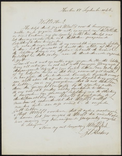 This is a letter to Ary Johannes Lamme, written in ink on paper by S. van der Berg. The letter is a testament to the power of the written word, and the labor involved in its creation. The author's hand moves across the page, forming each letter with care. Note the texture of the paper, its surface absorbing the ink in a way that gives each stroke a unique quality. This material evidence shows that the author carefully selected the correct nib and paper for his work. Consider the social context of this letter. In a time before instant communication, handwritten letters were a primary means of staying connected, and the labor embedded in the process speaks to the value placed on these personal connections. The letter is not just a means of conveying information, but a tangible expression of the author's thoughts and feelings. In understanding the full meaning of this artwork, we must consider the materials, the making process, and the social context in which it was created, thereby challenging the traditional distinctions between fine art and craft.
