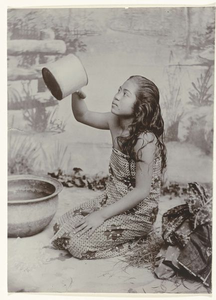 This albumen print, titled "Meisje spelend op een xylofoon", was created by Woodbury & Page. During the colonial era, photography served as a powerful tool for shaping perceptions of different cultures. This image captures a young girl playing a xylophone, likely in the Dutch East Indies, now Indonesia. The details of her dress, the instrument, and her serene gaze invite viewers to consider her identity. Is this a candid snapshot, or a carefully constructed representation? The girl's posture and attire suggest a staged scene, raising questions about the photographer's intent. Is this an attempt to exoticize or romanticize her culture? Does it respect her individuality? The photograph is a reminder of the complexities of cultural exchange. It prompts us to think critically about the photographer's role, the subject's agency, and the stories we tell ourselves about those who are different from us. It is in the space between the xylophone's notes that the colonial gaze meets a young woman's unknowable interiority.