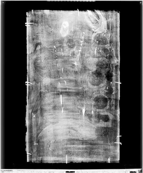 Editor: This is an X-radiograph of "Entry to Jerusalem" by Domingo Valls, revealing the painting's underlayers. It's fascinating to see the bones of a work, its hidden structure. What can we learn from this technical view? Curator: It invites us to consider the power dynamics inherent in art history. Who gets to create, whose work is preserved, and how is it analyzed? The x-ray reveals not just the artist’s process but also the layers of interpretation and potential biases we bring to understanding cultural objects. What stories are hidden beneath the surface? Editor: That's compelling – it’s more than just seeing the underpainting, it’s about questioning the entire structure of art historical narratives. Curator: Precisely. By interrogating these layers, we challenge the established canon and open space for more inclusive dialogues. Editor: I’ll definitely look at art differently now!