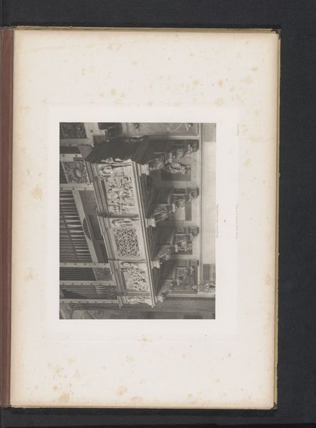 Curator: This gelatin silver print from 1910 captures a street scene in Alkmaar, Netherlands. Titled "Boekhandelaar Frederik Coster naast zijn boekenkraam op het Hofplein te Alkmaar," it depicts the bookseller Frederik Coster alongside his book stall on Hofplein. Editor: Immediately, the composition strikes me. The pyramidal stack of books dominates the image, almost dwarfing Coster himself. The light is diffuse, lending a quiet, contemplative mood. Curator: The photo provides a valuable glimpse into the history of bookselling and street vending in the early 20th century Netherlands. Coster's presence invites us to consider the role of individuals in shaping access to literature and knowledge within a specific community and how class dynamics may be at play. Editor: Agreed. And the composition further emphasizes this. The repetition of rectangular forms – the books themselves – is visually satisfying. Then there’s the patterned tablecloth and how its complexity offsets the books' rigid structure, which creates an interesting texture. Curator: Beyond the purely formal, there's also a quiet commentary here. Think about the power of the written word, and its accessibility (or lack thereof) to people in 1910, with implications across social and political movements of the time. It offers an opportunity to critically engage with the sociopolitical functions of print and the possibilities for marginal communities. Editor: Absolutely, but considering it formally, I also notice how the tones create subtle gradients from dark to light. It guides the eye, settling ultimately on the book merchant himself. This element balances form and social context—how the artist has constructed a visual language, semiotics, to tell this story. Curator: A powerful example of how understanding the social conditions and individual actors represented in the photograph contributes to our understanding of the photograph itself and invites us to reflect on the power of the photograph to both capture and subtly participate in culture. Editor: Yes, in isolating a specific configuration with unique compositional properties, a record in silver that is permanently available to be discovered, disseminated, and analyzed across time. Curator: A perfect distillation of the power of interdisciplinary understanding, don't you think? Editor: Indeed. Both prisms are needed to properly view this photograph.