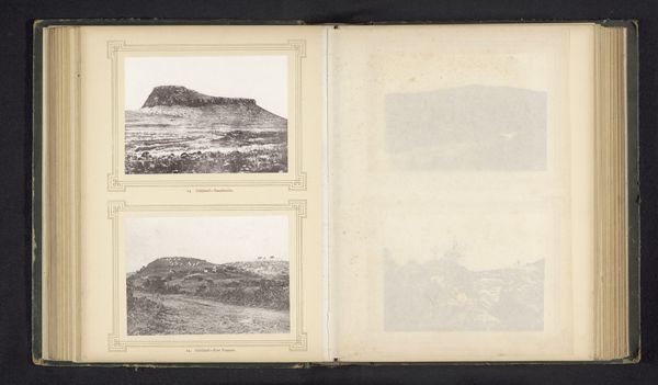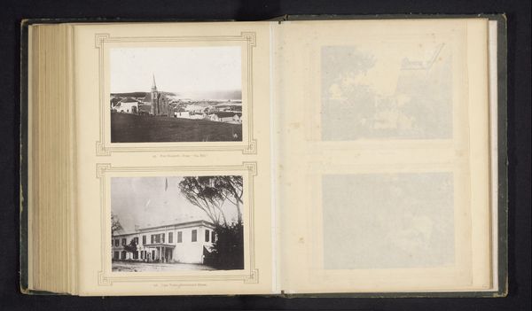 Editor: This page from a pre-1880 photograph album presents views of "Natal-Coffee plantation" and "Mozambique-Old church," showcased through albumen prints. There's something undeniably nostalgic about the sepia tones and the visible paper texture. What story do you think these images are trying to tell? Curator: Oh, this breathes history! To me, it’s not just about the places depicted but the act of documenting them. Early photography wasn't just snapping a pic; it was an expedition, a statement. That coffee plantation... the repetitive order of the plants, almost feels like an assertion of control over the landscape. Don't you feel it hints at colonial endeavors? Editor: I see what you mean! There's an inherent power dynamic captured even in a simple landscape. And the church, so stoic. I’m curious, what draws your eye first when you look at these kinds of historical photographs? Curator: The human element, or rather, its absence. Where are the people? Are they intentionally left out, or is it merely the limitation of early photographic techniques? It begs so many questions about perspective and representation. Did you notice the font used for captions; feels oddly assertive, don't you think? Editor: Absolutely, the contrast between the delicate images and that bold font is striking. It adds a layer of formality. I hadn't thought about the missing people until you pointed it out – now, I'm overflowing with even more questions. Curator: Isn't that the joy of art? Every answer breeds a dozen more questions. And old photos, like whispers from the past, invite us to listen closely and imagine what's not shown. Editor: This has completely changed how I look at photographs. I'm already itching to dig deeper into the colonial context and photographic techniques.