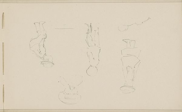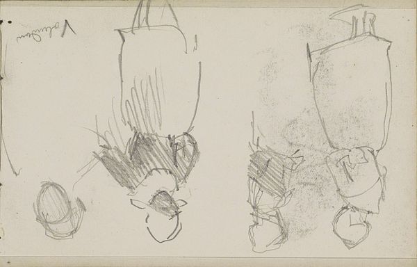 Curator: Looking at George Clausen’s "Vrouwen in Marker klederdracht" from 1875, done with pencil on paper, what’s your initial reaction? Editor: The first thing that strikes me is how raw it feels, like a snapshot directly from a sketchbook. It feels unfinished, which makes it all the more intimate, somehow. Curator: Precisely. This isn't a polished, presentational piece, but more like a working study. Notice the toned paper – that choice would influence the behaviour of the graphite and subsequent rendering, lending an overall softness to the image. This reflects the impressionistic movement where emphasis was given on how the materials themselves create impact. What do you think about Clausen focusing on depicting working-class women? Editor: It tells a fascinating story about art institutions then, doesn't it? The establishment of art schools that promoted "en plein air" allowed access for artists to depict these images. These studies capture a shift toward representing ordinary life, documenting, perhaps romanticizing, the labor of these women in their traditional costumes. It is interesting seeing how art portrays those outside the traditional purview. Curator: That social lens is compelling. But thinking about the material realities, consider the role of readily available and relatively inexpensive pencils. Were these the only readily-available material to record the women or did Clausen consciously make an active choice that this was how he would use to sketch. I think considering the material aspect elevates the understanding to the circumstances and deliberate artistry involved. Editor: I agree it gives a deeper understanding on why they are represented. Also this art piece will go through so many hands, the pencil becoming more or less faded with each transit from its conception. Curator: True. Seeing the marks age alongside the memory that this sketch documents. What a layered reflection of making and time. Editor: Yes, considering the cultural context along with material components helps create a much better perspective and how these artworks make their ways into art historical discussions.