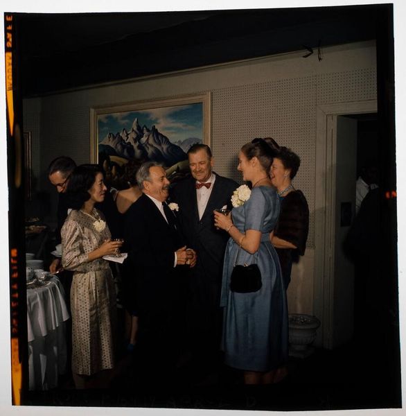 Editor: This is an untitled photograph from an artist named Martin Schweig showing three formally dressed young people. It feels very posed and a little bit staged. What stands out to you about the photograph? Curator: The composition is quite deliberate, isn’t it? Schweig uses the backdrop of the mantle and its decorative elements to frame the subjects. Note how the figures are arranged, creating a balanced triangular structure. Editor: I see what you mean. The eye moves from one figure to another, and the objects in the background add depth. So you are saying the arrangement adds to the formal aspects? Curator: Precisely. The interplay of light and shadow, particularly on their clothing, further enhances the textural and tonal qualities. How might the poses contribute to the overall reading? Editor: Interesting! Focusing on the forms definitely gives me a new perspective. Curator: Indeed, analyzing its formal elements unlocks a deeper appreciation.