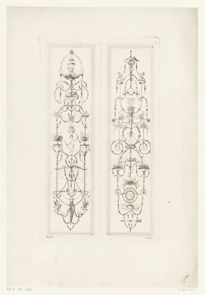 Editor: Here we have Carel Adolph Lion Cachet's 1916 print, "Handtekeningenblad ter gelegenheid van het vijfentwintigjarig jubileum van de N.V. Philips Gloeilampenfabrieken"—a commemorative sheet for the 25th anniversary of Philips. It is created using ink and looks almost like it's on aged parchment. The repetitive bulb designs give it a distinctive, industrial feel. What do you see in this piece? Curator: It’s fascinating how this celebratory sheet uses Art Nouveau to frame corporate identity. Notice how the ornamental style, typically associated with nature and individuality, is employed to promote a major industrial player. Consider the context: 1916, amidst the First World War, Philips was rapidly expanding. This print speaks to the evolving relationship between industry, art, and propaganda, suggesting how corporate entities were beginning to harness aesthetic movements to cultivate a desirable image. How might the choice of Art Nouveau, with its connotations of luxury and progress, have resonated with its intended audience during that period? Editor: That's a great point about the potential audience. I hadn't considered it within the wartime context. Was it meant to signal that Philips represented hope and innovation despite the war, or perhaps something else? Curator: Precisely! It’s crucial to dissect whose narratives are being amplified. Was this a self-congratulatory pat on the back for Philips, or was it subtly shaping public perception of the company's role in a changing world? How might workers have perceived this decorative print versus the company's executives? Considering class dynamics and power structures helps us reveal the hidden complexities behind seemingly innocuous celebratory art. Editor: That's fascinating; thinking about those layers really changes how I see the piece. Curator: Exactly, interrogating these power dynamics can show us how seemingly decorative or celebratory objects really contributed to broader socio-political conversations.