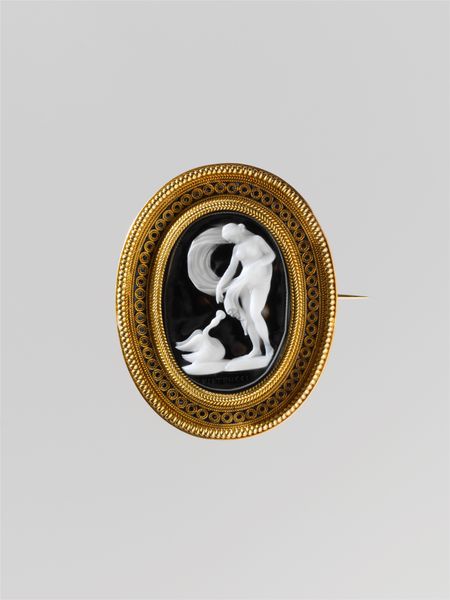 Giovanni Antonio Girardet created this delicate cameo, Amorino with a Garland, during the mid-19th century. This was a time when the decorative arts were thriving, reflecting the social and cultural values of the burgeoning middle class. Within the confines of this small frame, Girardet presents us with a figure that embodies innocence. Traditionally, these figures would have been representations of idealized beauty. However, here, the figure with its garland is a cherubic symbol of love, beauty, and, perhaps, an idealized version of childhood. The cameo reflects the desire to capture and preserve fleeting moments of beauty and innocence, a yearning that perhaps speaks to the transient nature of life itself. As you contemplate this work, consider the emotional and personal dimensions it evokes. This is not just an object of beauty, it is a repository of feelings, memories, and desires that resonate across time and cultures.