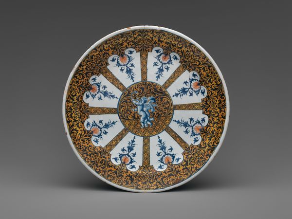 Nicola Francioli, called Co, created this tin-glazed earthenware dish, sometime in the 16th century, in Urbino, Italy. Dishes such as this one were not simply functional objects; they were status symbols for the families whose heraldry they displayed. The central shield with its checkered pattern and crescent moons, encircled by serpentine dragons, proudly showcases the Vitelli family's lineage and social standing. The grotesque masks and stylized floral motifs reflect the decorative tastes of Renaissance Italy, a time of burgeoning aristocratic power. The social conditions that shaped the production of this dish include the patronage system, in which wealthy families like the Vitelli commissioned artworks to enhance their prestige. We can learn more about this system by looking at archival records of commissions, artists' contracts, and family histories. This dish is a reminder that even the most decorative objects can offer insights into the social structures of their time.