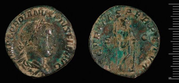 Curator: This is a copper coin, a "Coin of Alpi," attributed to Najm al-Din Alpi. It's currently held in the Harvard Art Museums. Editor: It looks incredibly worn, doesn’t it? The copper is heavily patinated, almost verdigris in color, hinting at its age and history. Curator: Precisely. The coin’s materiality speaks volumes about circulation and the economic systems of the time. The wear and tear are evidence of its role in everyday transactions. Editor: What’s striking is how something so small could have such outsized importance. It represents Alpi's political power and control over resources, doesn't it? Curator: Indeed. Consider the labor involved in its production, from mining the copper to the detailed process of striking the coin itself. Editor: Seeing the wear reminds me how art objects are shaped not just by their makers but by the societies that use them. Curator: Absolutely, it's a potent little object, a snapshot into trade and power dynamics. Editor: It leaves you wondering about the hands it passed through, the lives it touched.