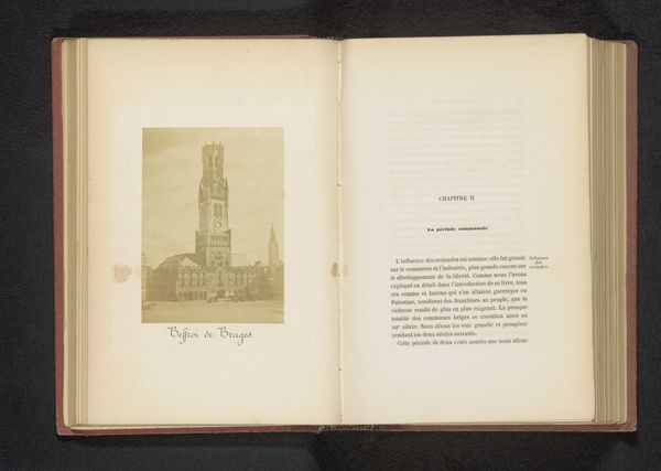 Curator: What strikes me immediately about this drawing, Tour des halles, Bruges, is the loneliness of the structure, towering like a ghost. Editor: Ah, Cundall & Fleming captured more than just a building before 1866, I suspect. I see the weight of the market hall. Curator: Weight as in, importance? Or weight in the sheer, material sense? Editor: Both. Consider the labor invested in such a place – think of the traders hauling goods, the stonecutters, the people milling about exchanging. That drawing romanticizes commerce into something picturesque and strangely quiet. Curator: Yes, the human bustle is totally absent, isn't it? Though, paradoxically, for me, it breathes with potential. I imagine voices, bartering, all the unpictured clamor, as though they have only just ceased and might resume the instant we turn away. It feels expectant, doesn't it? Editor: I am mostly intrigued by this structure – drawing on paper— it speaks of privilege to have the resources to create such a detailed representation of this impressive tower and building! Not so many, at this time, would have these resources at their fingertips! What kind of consumer was intended for this art? What did its potential buyers consume that they might consider this purchase?! Curator: Hmm, someone yearning for, and very likely profiting from, international trade, perhaps? It might have been hung in an office. Yet it also exudes nostalgia, wouldn't you agree? The tower looms grand, perhaps overly grand, its isolation emphasized by the stark paper surrounding it. Almost elegiac. Editor: That may be so. But as an art object, that piece of paper testifies to social stratification of that period... to whom the building would mean what is perhaps now lost. The materials, the act, the commission - if any - all reveal stories about a Bruges that isn't present. Curator: I am reminded that, by turning their attention to an architectural subject in faraway Bruges, they may also speak to cultural trends of seeing. This might suggest to viewers a Bruges as picturesque backdrop… It raises question for the commodification of experience – very thought provoking! Editor: Right, very true. Curator: It makes you wonder about what the materials are hiding. Editor: Or revealing… in unexpected ways.