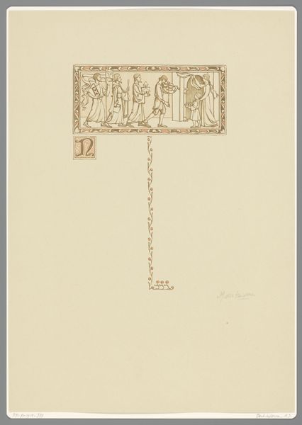 Antoon Derkinderen made this drawing of knights and dragons using paper, pencil, and possibly watercolor. The medium influences the overall aesthetic. The choice of paper gives a delicate, handmade quality to the work, contrasting with a contemporary context of industrial production. The artwork has a clear structure. The image features multiple instances of knights in combat with dragons that create a complex vertical rhythm that carries the eye up the page. These mythical figures are interspersed with foliate ornaments. It gives a sense of dynamic movement to the scenes, but it is held in check, neatly laid out in rectangular boxes. Derkinderen was deeply invested in craft traditions, particularly those associated with bookmaking and the Arts and Crafts movement. This movement reacted against the alienation of labor, but Derkinderen also seems to have been influenced by earlier illuminated manuscripts, with its elaborate detail. The drawing thus evokes a pre-industrial world, where meticulous artistry and historical narratives were highly valued.