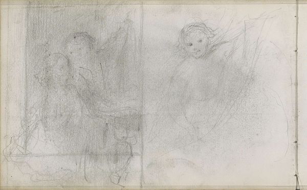 Curator: This is "Groep van tien mannen en vrouwen," or "Group of Ten Men and Women," a pencil drawing created around 1858 by Bastiaan de Poorter. It's currently held at the Rijksmuseum. Editor: Oh, this is... intriguing. Almost unsettling. There’s something about the density of the figures, all crammed together and mostly sleeping, that gives me the creeps. Are they sleeping, or… Curator: It does evoke a rather somber feeling, doesn’t it? You notice the sketch-like quality. The artist seems to be exploring form and composition more than striving for a polished finish. He really makes the pencil work, layering the graphite to create depth in those faces. Editor: Right. It makes me wonder about the material limitations and the context of its creation. Was paper expensive? Was it a preliminary sketch for something grander? The work is not quite complete—there's labor in process, especially visible in the outlines. You get a sense for the economic value in a sketch. It also shows how materials themselves can dictate the aesthetic choices, right? Curator: Absolutely, the availability and cost of materials definitely play a role. Maybe this sketch was intended as practice for a larger composition. He may be testing various faces and figuring out placement. But as a complete artwork itself, the unfinished appearance provides intimacy for the viewer: a voyeuristic scene perhaps of observing the human figure in its most vulnerable, private, moments. Editor: Yeah, vulnerable is the perfect word. The unfinished quality lends this intimate insight. Look at the visible process, where lines and shadows reveal the maker's movement: the economic aspect really strikes home because, ultimately, everything ties back to resources—both natural resources and labor itself. How accessible was artistic training or the basic supplies for a lower class versus upper class citizen? It raises questions of class, doesn't it? Curator: Absolutely. These are really pertinent observations. Perhaps the intention was more in the process than the completed article? Now that I consider that further, that's definitely quite liberating... not weighed down by having to get it *perfect*. Editor: Indeed. De Poorter gives us the impression of both accessibility and privilege in his art. It’s something that you carry away from your experience of seeing this drawing, regardless of the material and the method that he used to create it. Curator: And I walk away just feeling more empathetic for those resting souls and maybe wanting to reach for my own pencils.