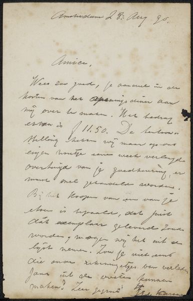 This is a letter from Johannes Mock to Christiaan Kramm, written in ink on paper. The elegant script, in itself, is a potent symbol, linking us to a tradition of correspondence now largely replaced by digital communication. Consider the act of writing a letter. It's a deliberate process, each word carefully chosen and inscribed, bearing the weight of intention and emotion. This recalls ancient forms of communication, from hieroglyphs to illuminated manuscripts, where the visual form of the message was as important as its content. We see echoes of this reverence for the written word across cultures, a testament to its power to transcend time and space. There is an emotional resonance in the letter, in the anticipation and vulnerability inherent in sharing one's thoughts with another. The act of writing can be a cathartic experience, a way to externalize our inner turmoil and connect with others on a deeply personal level. The letter stands as a poignant reminder of the enduring power of human connection, even in the face of ever-changing technologies. This non-linear progression reminds us how symbols evolve, resurface, and acquire new meanings throughout history.