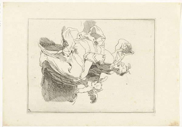 Editor: This pen drawing, "Man Sitting on a Stone" by Hermanus Fock, dating roughly between 1781 and 1822, has such an air of melancholy about it. The subject seems so withdrawn. What do you see in this piece that speaks to the context of its creation? Curator: The figure, rendered in the genre style popular then, invites reflection on the social and political landscape of the time. Consider the late 18th and early 19th centuries: a period of immense upheaval, from the Enlightenment’s challenges to established hierarchies to the rise and fall of Napoleon. How might such instability be reflected in depictions of ordinary individuals? Editor: Perhaps the man's dejected posture is a subtle commentary on the anxieties of the common person amidst all this change. But could it also be mere observation? Curator: It's tempting to see it simply as a genre study. Yet, the drawing resides in the Rijksmuseum—an institution itself shaped by 19th-century nationalism and the desire to create a shared Dutch identity. Does the act of preserving and displaying such a work imbue it with a different meaning, elevating it from simple observation to a symbol, however subtle, of a specific social class or condition? What public function does this image serve? Editor: That's a perspective I hadn’t considered. The very act of putting it in a museum gives it significance. Curator: Exactly! And it encourages us to question whose stories get told, and how institutions shape our understanding of them. Editor: So it is a simple image, perhaps, but rich in institutional context. Thanks, this has helped me think about the broader implications of art in society. Curator: And you've helped me see the direct impact these grand narratives can have on our reading of a humble drawing. A fruitful exchange!