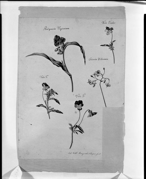 Editor: This is Johann Wilhelm Marzorati’s drawing, “Rosebuds.” I find the contrast between the delicate buds and the thorny stem really striking. What do you see in this piece? Curator: Well, roses are often seen as symbols of beauty and femininity, but also associated with pain, right? Considering the period this was created, what does it tell us about the expectations placed on women? Beauty, but also the thorns, the defenses? Editor: That’s fascinating! I hadn’t considered the thorns in that light. Curator: The rosebuds, not yet fully bloomed, could also symbolize unrealized potential or stifled growth. How can we connect this imagery to our modern understanding of the fight for gender equality and the struggles women face? Editor: This gives me so much to think about in terms of roses and female representation. Curator: Exactly! Art can be a lens through which we understand and challenge societal norms, even those subtly encoded in botanical illustrations.