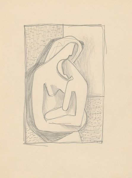 Curator: Mikuláš Galanda created "Melancholy Highwaymen" sometime between 1935 and 1936. It's a drawing using pencil to explore figuration and geometric abstraction. My first thought is that the figures emanate stillness despite their unusual construction, with each sharp contour balanced by a soft melancholy, as if resigned to some inescapable destiny. Editor: The mood definitely hits you first. It feels like we're observing people trapped in an oppressive structure, maybe reflective of social or political forces at play. Curator: Perhaps. I read it more as an exploration of inner states reflected through external forms. Galanda simplifies the human form, reducing figures to geometric blocks, almost archetypes. What do you think the presence of such stylization does to their perceived emotional impact? Editor: I think that it forces us to read their affect through pose and relation, and that pose indicates dejection. By abstracting them, Galanda universalizes their sadness. It doesn't depict one specific experience of sorrow; rather, sorrow is imposed structurally upon them, which implicates forces much larger than individual experience. There is something unsettling about seeing humans turned into monuments of their grief. Curator: The repetitive, hatching of pencil strokes and choice of reddish-brown hues may be interpreted through that symbolic system, invoking images of earthy limitations—of boundaries and inescapable material reality—while hinting toward the passion bound in grief. What resonates for me is how Galanda imbues these seemingly simple lines with such enduring gravity. Editor: What’s interesting is that Galanda made this during a time of political turmoil, when fascism was rising and oppressive political and economic conditions were becoming more restrictive across Europe. In this light, these melancholy figures become reflections of powerlessness against systemic oppression. Curator: The title becomes all the more significant when paired with such context! And it reminds us of art's incredible ability to hold and transmit coded memories. Editor: Right. That melancholic mood carries the historical weight of powerlessness and resistance. Perhaps that’s why these figures resonate so powerfully even today.