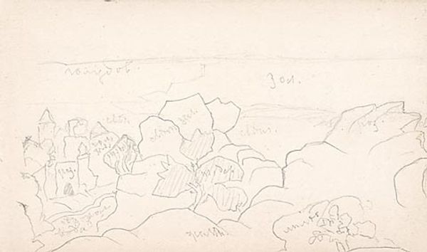 This is "Monhegan (study)", a sketch on paper by Nicholas Roerich. The first thing that strikes you is the directness of the line. Roerich has used a simple graphite pencil to capture the essence of the landscape, focusing on its geological structure. Each stroke seems deliberate, mapping out the contours and textures of the island. The pencil, a humble tool, becomes an instrument of exploration, revealing the lay of the land. The act of sketching is inherently immediate. It invites the viewer to consider the labor of observation – the time spent studying the landscape, selecting key features, and translating them onto paper. This study suggests a broader social context, as Monhegan Island has long been a haven for artists seeking inspiration in its rugged beauty. Ultimately, this sketch challenges our understanding of art by highlighting the importance of process, skill, and place. It's a reminder that even the simplest of materials, when wielded with intention, can reveal profound truths about the world around us.