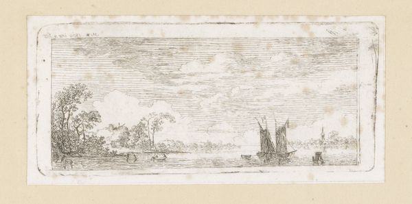 Editor: This is Gerhard Ludvig Lahde's "Proof Sheet of Landscape with Castle and Church," made in 1788. It's a small, delicate etching. I'm struck by how dreamlike it feels, even unfinished. What catches your eye about it? Curator: The title itself, "Proof Sheet," signals the artist's process. Looking at this through a historical lens, it speaks to the evolving role of art and the artist in the late 18th century. Prints became more accessible, democratizing art. But what was the effect of that change? This artwork almost represents an exploratory process to be made accessible to the public. Editor: So, it's not necessarily meant to be a finalized, polished image? Curator: Exactly. This hints at a changing perception, a shift from art solely for the elite to art for a wider audience. Prints played a huge role, allowing for replication and distribution. Note the architectural elements of a church tower with the barest landscape as if memory or travel created its form. Consider how the depiction of architecture may also relate to social structure. What stories are implicit? Editor: That makes me wonder about the relationship between the artist and their patron, and how it was perhaps changing. Is that a valid consideration for something like this? Curator: Absolutely. As the art market developed, artists gained more autonomy, yet the imagery had to also suit market demands and wider accessibility for the new owners and consumers. Perhaps this “Proof Sheet” provides insight into this transition. How does this unfinished aesthetic impact how we view art of this era? Editor: I hadn’t considered it from that perspective. Seeing it as a part of a bigger social and economic shift really adds another layer of meaning. Thanks! Curator: It's about how we frame art in relation to its time, to its potential public, and the systems within which it existed. Fascinating, isn't it?