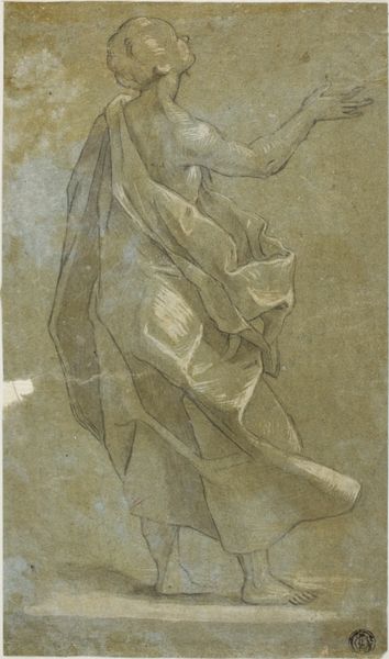 Pietro Bernardi sketched "Bishop Saint in Supplication" using black and white chalk on gray paper. The early 17th century was a period of religious conflict and reform, deeply influencing the art of the time. Bernardi captures a figure in deep supplication, highlighting the intense personal devotion that was central to the period's spiritual life. How does the Bishop Saint's identity as a religious leader intersect with his vulnerable posture? The use of light and shadow here isn't just about aesthetics; it draws us into the emotional experience of faith. The traditional representation of religious figures often emphasizes power and authority but Bernardi’s drawing offers a more human, accessible vision. This image invites us to consider the complexities of religious identity and the ways in which personal faith is expressed amidst social and political change.