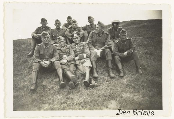 This photograph, taken by an anonymous photographer, captures Wehrmacht and Kriegsmarine soldiers with Dutch girls. The texture and tone of the photograph, with its grayscale palette, gives it an authentic, historical feel. The neutral colors allow us to focus on the expressions of the subjects and the composition of the image. Look at the detail of the crumbling wall in the background - the way the light catches the broken bricks, the deep shadows they cast. The rough texture is almost palpable. This contrasts with the smooth faces of the people, and the crisp lines of their uniforms. It's a reminder of the tension between the people and the place, the individual and the wider setting. Photographs are often seen as documents of truth, but this image highlights how they can also be carefully staged and composed. There is something inherently unsettling about this work, as it hints at the complicated ways in which relationships develop and are captured in moments of conflict. It reminds me of the work of Gerhard Richter, in the way it captures a moment in time that is both specific and open to interpretation.