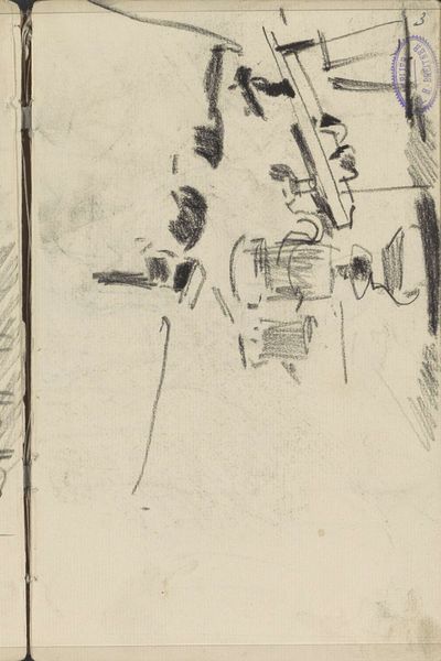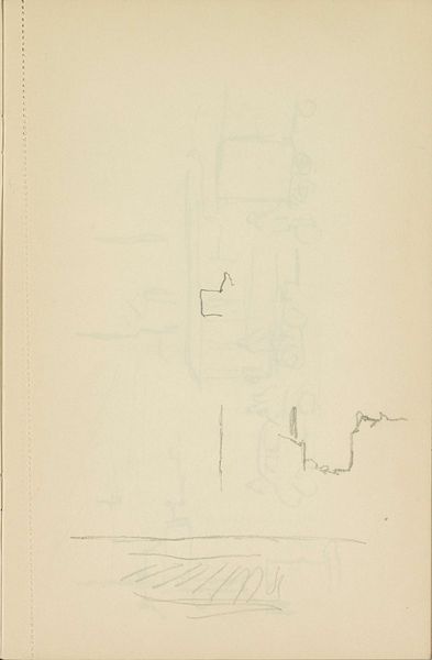 Curator: Here at the Rijksmuseum, we have a pencil drawing on paper by Cornelis Vreedenburgh, simply titled "Auto," created sometime between 1890 and 1946. Editor: Well, my first impression is that this is just that: an auto. Its skeletal form almost gives it the appearance of something unearthed. Curator: Exactly, it reflects a fascination with the budding machine age, but also anxieties about its impact on Dutch society, the fear of overtaking traditional values perhaps? This automobile almost becomes an artifact on display in itself, representing this complex negotiation with modernity. Editor: I see it also from a structural point of view. The minimal lines, mostly geometric, show us just enough of a framework that, if completed, could reflect a much bigger machine. It’s almost a Platonic ideal of a car. Curator: It makes me think about accessibility too. Automobiles at that time certainly signified privilege, a huge marker of social status and wealth. And here is Vreedenburgh documenting this transformation in Dutch culture. This almost dreamlike quality that captures our imagination shows it wasn't everyday life, yet. Editor: I agree with the elusive nature, even from just an artist's practice point of view, that's quite intriguing. He barely puts the pencil to paper, so sparse is it. However, this deliberate withholding adds an alluring quality. Curator: Indeed, there’s a subtle commentary on social values woven into those incomplete lines. Editor: It seems that Vreedenburgh used it as an invitation for us, as viewers, to complete its image with our expectations, reflections, fears or dreams, in this era of new possibilities. Curator: Yes, looking closer it is indeed much more than a simple sketch on paper, but actually, reveals a nation in transit.