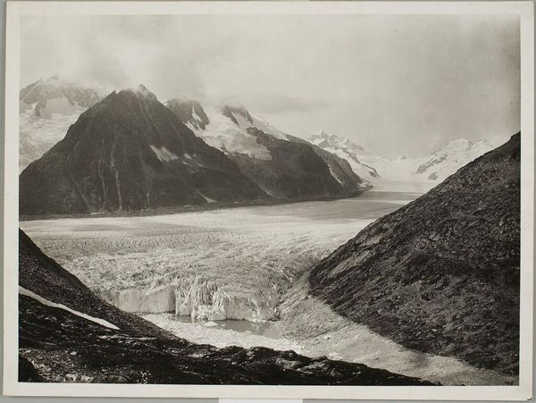 Editor: Here we have A.G. Wehrli's photograph, "Zermatt und Matterhorn." The detail in the town nestled at the foot of such a majestic mountain is quite striking. What do you see when you look at this piece? Curator: I see a carefully constructed image, a commodity created for consumption. The photograph itself, its production and distribution, speaks to a burgeoning tourist industry and the commercialization of the Alpine landscape. How were these images sold and consumed? Editor: That's a great question! It makes you wonder about the working conditions of the photographer and the accessibility of these images. I never thought about it that way. Curator: Exactly! By considering the materials and processes, we uncover the social and economic context in which this artwork was created and circulated.