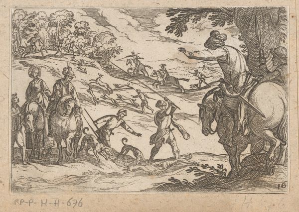 Antonio Tempesta created this print, “Hunters Shooting Birds with Crossbows,” sometime between 1555 and 1630. The image depicts an aristocratic hunting party, complete with dogs, servants, and horse-drawn carriages, taking aim at birds in a densely wooded landscape. During the late Renaissance and Baroque periods, hunting was not merely a sport, but a potent symbol of social status and power. These hunting scenes, popularized through prints like this one, reflect the complex hierarchies of the time. The hunters, likely members of the nobility, are actively engaged in a display of dominance over nature. Meanwhile, the marginalized figures, the animals, and servants, are relegated to subordinate roles. This print invites us to reflect on how nature, class, and gender intersect in the construction of social identity. It offers a glimpse into a world where privilege is not just a matter of birth, but a performance enacted through leisure activities and control over the natural world. It leaves you wondering, who gets to play and who must work?