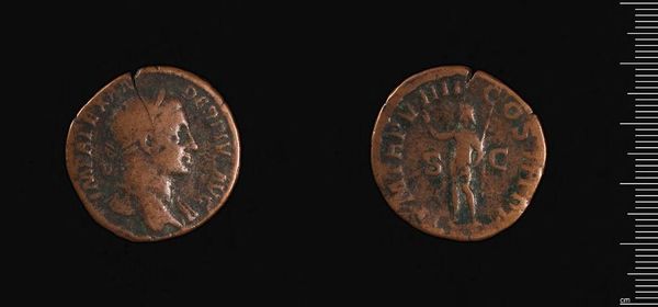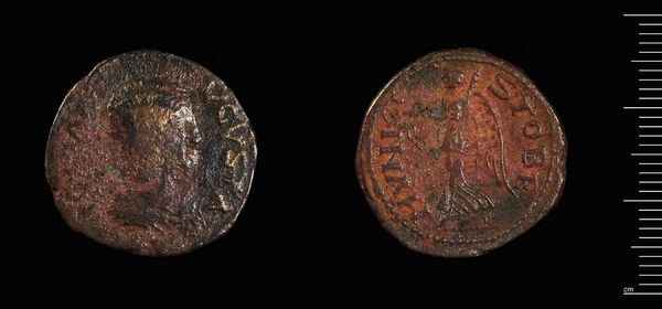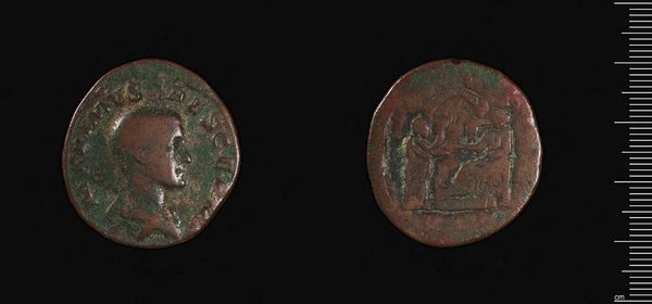 Curator: Oh, how incredibly human. Even in miniature, we see empires rise and fall, captured on something as simple as this coin. Editor: It's the "Coin of Seleucia ad Calykadnos under Gordion III" residing here at the Harvard Art Museums. It's fascinating how a small object can carry so much weight. Curator: I love its worn texture, the way history has eroded it. It feels like holding a piece of time, doesn't it? You can almost imagine who might have held this once. Editor: Absolutely. And who benefited from its circulation? Power dynamics were literally stamped onto these coins. The image of Gordian III is about legitimacy. Curator: You’re so right. And seeing it now, displayed so carefully, elevates it beyond currency, almost turning it into a talisman, a relic. Editor: It makes you ponder who decides what gets preserved, and whose stories get told, or in this case, minted. Curator: Precisely. It’s a lovely little mirror reflecting grand narratives, or perhaps reminding us that even grand narratives eventually crumble. Editor: Indeed. May we continue to reflect on these narratives, and the perspectives they include, and erase.