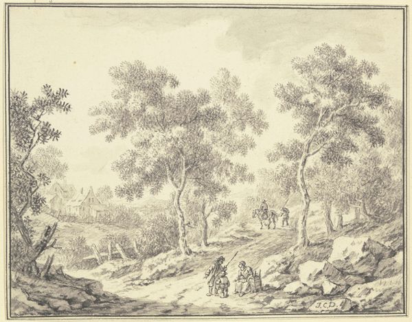 Aignan-Thomas Desfriches created this small landscape in France using graphite, likely in the latter half of the 18th century. It depicts peasants outside a rural inn, a common scene, but one pregnant with social implications. During this period, France was a society of strict hierarchies. Artists often depicted rural life through rose-tinted glasses, idealizing the peasantry for the pleasure of the aristocracy. But here, we might ask, does Desfriches participate in this idealization or offer a subtle critique? The inn, a public space, would have been a site of social interaction, where class divisions might be momentarily blurred or, perhaps, reinforced. The very act of depicting peasants in a landscape, rather than in a more formal portrait, speaks to their position in the social hierarchy. To fully understand this drawing, we might consult period literature, social histories, and even economic records to get a sense of the lived experiences of the French peasantry. Art doesn't exist in a vacuum; it's always in conversation with the social and institutional forces of its time.