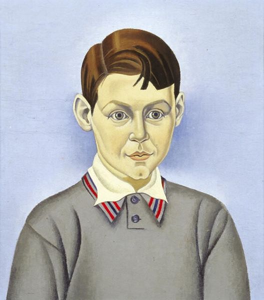 Curator: Here we have L.S. Lowry’s "A Young Man" housed here at the Tate. There isn't a confirmed date for this piece. What do you make of him? Editor: He looks… anxious, utterly burdened. The large ears, the slightly bloodshot eyes - a visual shorthand for vulnerability, maybe even a repressed scream. Curator: I think you’re onto something. The oversized features do suggest vulnerability, almost a caricature, but his dark suit presents a different story, a conformity perhaps? Editor: The suit does introduce a tension, doesn't it? Is it a costume, a disguise? Maybe the artist is exploring how society forces us into roles that don't quite fit. Curator: Or maybe he’s just a young man feeling awkward in his Sunday best. Lowry always captured the quiet dignity of working-class life, and often their sorrows. Editor: Yes, the sorrow is there. Symbolically the blue background reminds me of sadness and distance. I find that this blue amplifies the emotion. Curator: I see it, it's as if Lowry captured a moment of existential contemplation, a quiet resistance against the pressures of life. Editor: Absolutely. A window into a soul, troubled but resilient. Curator: Very well said.