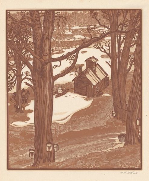 Editor: This etching, "Untitled (Winter Landscape)" by Hamilton Hamilton, created in 1886, evokes a stark and solitary mood. I'm really struck by the realism, but it also feels imbued with a certain quiet melancholy. What's your take? How do you interpret this work, considering the period it was made? Curator: Well, considering it’s the late 19th century, think about what realism represented then: a shift toward portraying everyday life and a retreat from idealized Romantic landscapes. How does this fit with the social realities of the time? Editor: I guess it’s showing the often-harsh realities of rural life? There isn't anything overtly grand or heroic here. It’s just a figure walking in a snowy landscape. Curator: Precisely. And the etching medium itself played a role. Printmaking made art more accessible, shaping public perception of these images and making art less of a commodity strictly reserved for the upper class. So, we should think about the politics of imagery – who is being depicted and for whom? Editor: So, this kind of image becomes more democratic and portrays common, rather than idealised subjects? Curator: Exactly! Moreover, the composition – the figure walking away, the stark trees – contributes to a particular narrative of human interaction with nature. Does the image, therefore, subtly invite the viewer to contemplate our relationship with the land during an industrialising period? What could this artwork’s message be regarding this new reality? Editor: That’s interesting! I hadn’t thought about the democratizing aspect of the print medium itself, or how it positions the average individual into art itself. It feels so obvious now, yet transformative in the late 19th Century! Curator: Precisely! Considering those factors reframes the work, doesn’t it? It becomes less about the simple depiction of a landscape and more about how that depiction functions within a larger cultural conversation.
