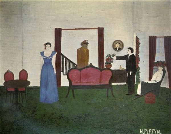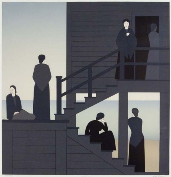Will Barnet made this painting, Dialogue with Space, using oil paint to create an ambiguous and emotionally resonant scene. Barnet's subtle gradations of tone are key, creating a world that feels still and silent. Look closely at the figures, both human and avian, they’re rendered with a soft-edged geometry, a sort of pared-down realism. The texture of the paint feels smooth, almost airbrushed, which adds to the dreamlike quality. The palette is muted, dominated by grays and blacks, and makes the painting feel both modern and strangely timeless. There’s something about the surface and the way the shapes sit within it that recalls the Italian painter Morandi, who built entire worlds out of careful observation and repetition. Art is like a conversation, and, like any good conversation, the meaning is never fixed, always open to interpretation.