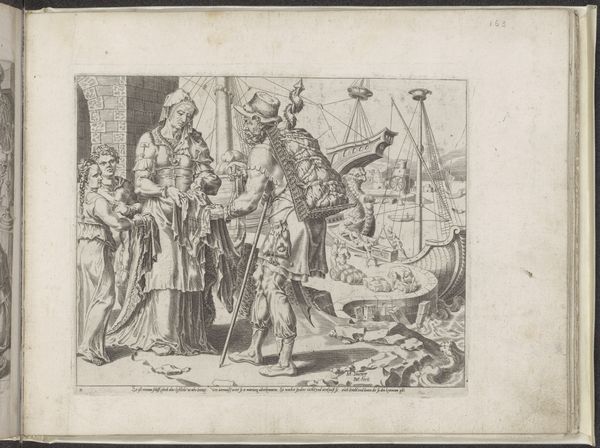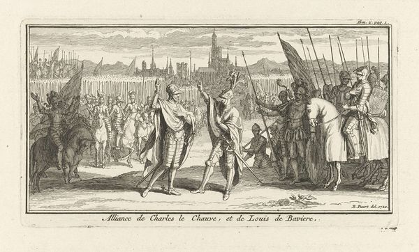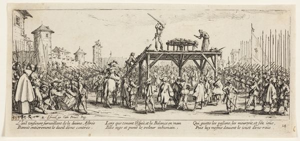 Curator: Today, we're examining "Théologie à la Turque," an engraving crafted in 1799 by James Gillray. This work, presently residing at the Metropolitan Museum of Art, employs printmaking techniques to convey its message. What's your first take on this image? Editor: Well, visually, it feels rather stiff, doesn't it? Almost theatrical. All those figures lined up, those books brandished about! It evokes a slightly sinister pantomime; everyone seems a caricature of… something. The setting beyond hints at ancient grandeur but there's so much activity here...it makes it hard to tell. Curator: Gillray was known for his caricatures and satirical prints, often targeting political figures and social customs. Considering the title, “Theology in the Turkish Style,” and the subtitle regarding the Coptic Mayor of Cairo, what comes to mind in relation to 18th-century material production? Editor: Right, thinking about printmaking at this time—it meant that imagery, even controversial political commentary like this, could circulate relatively widely. And looking closer... the procession is strange. Is the mayor being celebrated, ridiculed, punished? Curator: That's a keen question. Gillray was likely commenting on the political tensions involving Napoleonic campaigns. His drawings provide insight into social attitudes of the time. Consider the tools of engraving – metal plates, etching acids - what does that tell us? Editor: So the physical labor is part of the artwork's "content," literally embedded in its being. The very act of making allows his opinion to have reach, to become more material and available. It speaks of dissemination. This one, while grotesque, almost holds that sense of freedom—the power to speak when the state cannot. It seems to celebrate those means! Curator: Absolutely! And each impression produced contributes to shaping public consciousness regarding cultural tensions within Britain, specifically anxieties about imperialist operations and interactions with other cultures. Gillray’s use of visual rhetoric acts as an artefact representing political undercurrents during times marked by war, colonial efforts, economic transitions Editor: Yes, it really is fascinating when one starts thinking about these things materially: it's not *just* some artist's opinion etched onto a plate but an index pointing towards so many other historical forces at work beyond! I'd not previously known what all these symbols represented together in quite this manner or fashion! Curator: It does indeed, reveal broader context through its medium, presentation, technique and material underpinnings!