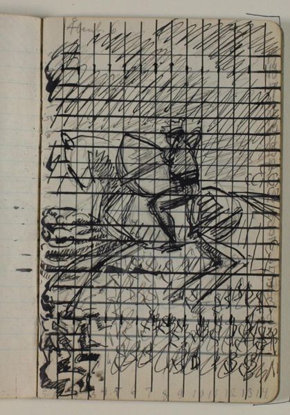 This is a sketch by Niels Larsen Stevns for Blicher’s novella, made with ink on graph paper. I love seeing an artist working out ideas, trying to capture the essence of a story through quick gestures and lines. The graph paper peeks through, a rigid structure underlying the fluidity of the drawing. The ink is applied in short, energetic strokes, almost scribbles, that define the forms of figures in motion. The runner, for instance, is rendered with a flurry of marks suggesting speed and urgency. The density of the ink varies, creating areas of shadow and light that add depth to the composition. Look how Stevns uses the grid to frame certain figures and how this creates an interesting dynamic between the spontaneity of the drawing and the order of the grid. It reminds me of the way Philip Guston embraced a kind of messy figuration, or maybe even Cy Twombly, in the way it combines drawing and writing. It is all about embracing the messy stuff of life, even when we are trying to tell a good story.