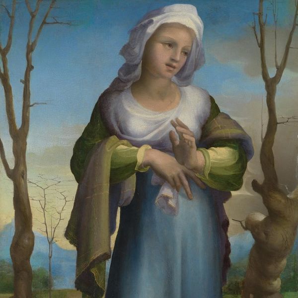 Andrea del Verrocchio and his workshop made this panel painting of the Virgin and Child, using tempera on wood, in Florence. The smooth surface and luminous colors result from the painstaking process of layering translucent glazes of paint. Verrocchio would have ground his own pigments, and prepared the panel support with gesso. The resulting image presents an idealized vision of motherhood, but the materials also speak to labor and the social context of its creation. Verrocchio ran a large workshop, training artists like Leonardo da Vinci. Collaboration was typical, and the division of labor meant that different hands contributed to different parts of the painting. Some assistants prepared the gesso panels, others ground pigments or applied the underpainting. Considering the time and skill required for each stage, from panel preparation to the final touches, helps us appreciate the value placed on craft and artistic skill in Renaissance Florence.