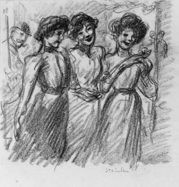John Leech made this pen and ink drawing, “In the Underground,” during a time of rapid industrial and urban development. It captures a moment in the lives of two middle-class women within London's burgeoning public transportation system. Leech's work offers insight into the gendered experience of public space. The women, adorned in elaborate dresses and hats, carry themselves with a composed demeanor that reflects the social expectations placed upon them. While the underground provided new mobility, it also subjected women to increased scrutiny and potential harassment. The drawing subtly hints at the class dynamics at play, with the women's attire signaling their privileged status amidst the diverse cross-section of society that would have been using this new form of transport. Through his illustration, Leech invites us to consider the complexities of identity and social interaction within the changing urban landscape. It is a document of how technological advancements are intertwined with cultural norms and personal experiences.