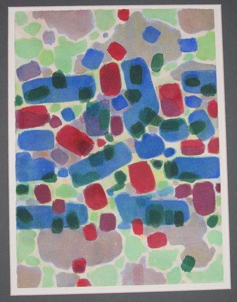 Editor: Here we have Hryhorii Havrylenko's "Composition" from 1967, a watercolor painting featuring a range of geometric forms in various hues. I'm struck by the way these shapes overlap, creating a sense of depth and movement. What can you tell me about this work? Curator: The first thing that catches my eye is the deliberate layering of the watercolors, creating a transparency that belies the inherent materiality of the pigments themselves. We're meant to consider the means by which this image came into being. Think about the social context: in 1967, abstraction had become very popular, seemingly divorced from its own social conditions, but the materials themselves - watercolour - implies process, and links itself more closely to labour. Editor: That's fascinating! So, are you suggesting that his choice of watercolour over, say, oil paint, carries some deeper meaning relating to artistic process or even something about its context of production? Curator: Precisely. The fluid nature of watercolor resists the kind of clean, machine-like precision one might expect in a modernist composition. By using watercolor and overlapping colours to produce new forms through layering, we also need to ask ourselves - where did these colours and forms originate, and whose labour facilitated their application? Editor: I see. It shifts the focus from just admiring the end result to considering the artist's choices and even how the art industry may function, perhaps not as neutral a thing as we assumed! Curator: Exactly. Havrylenko's "Composition," like so many seemingly “purely aesthetic” works, reminds us that art is fundamentally a product of materials, labor, and social forces, not merely aesthetic contemplation, that must never escape consideration. Editor: Well, I definitely see it differently now. Thanks for that insight. I have to look for those implications in future works, and consider production.