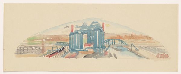 Curator: Carl Grossberg's "Sketch for Industrial Landscape" offers a fascinating glimpse into the artist's vision. Editor: There's a stark beauty in its depiction of industry; the watercolor washes lend a delicate quality to what would otherwise be a scene of imposing structures. Curator: Grossberg, who was associated with New Objectivity, often explored themes of industrialization and urban life. His works invite viewers to confront the changing landscapes of the early 20th century. Editor: I can’t help but wonder about the human cost of such progress. Are we meant to celebrate these factories, or question the environment they create and what kind of labor force they require? Curator: These kinds of industrial landscapes were celebrated as signs of modernity, but I understand your reading as a questioning of progress and its effects. Editor: The muted palette and the sketch-like quality give it a sense of ambiguity. It is definitely something I will continue to think about. Curator: Indeed. It's a compelling reminder of the complex relationship between art, industry, and society.