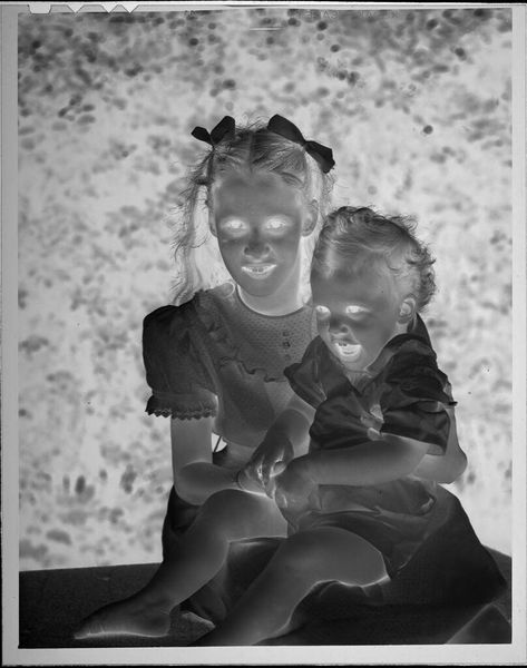 Editor: This is an untitled photograph by Lucian and Mary Brown, a little girl with a doll next to a tree. The negative image creates an unsettling, almost dreamlike quality. What symbols jump out at you in this piece? Curator: The tree, first, as an archetype of life, knowledge, and connection. The girl and her doll? Perhaps reflecting the self, or a hope for the future. Consider the inverted tones – a reversal, perhaps symbolizing hidden truths or the subconscious. Editor: Hidden truths? That's interesting. Do you think the artists were consciously layering those symbols? Curator: Perhaps intuitively. The act of creating itself is often a symbolic process. Photography can capture more than the surface, revealing the emotional and psychological landscape. Editor: I see it now! Thanks for showing me that. Curator: My pleasure. It is like glimpsing a memory, isn’t it?