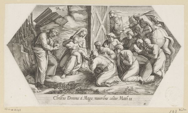 Francois de Poilly made this print, "Bewening," in France during the latter half of the 17th century. The print shows a scene of mourning over the body of Christ. It uses a visual language that was widespread at the time to convey both religious and political ideas. During the 17th century, the Catholic Church played a key role in shaping cultural values. Prints like this one were a medium for circulating ideas about piety, sacrifice, and divine authority. The image would originally have been consumed in a religious institution. However, it's not just a straightforward illustration of religious doctrine. The print seems to comment on the social structures of its time. The figures are positioned in a way that evokes a sense of communal grief, perhaps reflecting on broader social inequalities and the suffering of the common people. To understand the print better, one might want to look at the history of religious institutions in 17th-century France, as well as the social and political movements of the time. Art is always contingent on its social and institutional context.