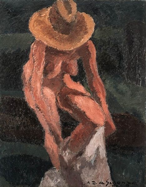 Curator: So, here we have Raoul Dufy's "Claudine from back," an oil on canvas painted around 1906. Editor: It strikes me immediately as a dance – not in the obvious balletic sense, but a kind of solitary, improvisational movement. The light catches her back just so. There’s a story unfolding there. Curator: It's interesting you say that. The intimacy here suggests a behind-the-scenes moment, away from performance. Dufy frequently returned to this motif of the female nude in private moments. Consider the history of portraying the female form in art—a recurring subject reflecting cultural ideals, sexuality, and vulnerability. It becomes about form and light, of course, but the nude as a subject invites symbolic interpretations. Editor: Absolutely. The curves are soft, but the palette is almost ruddy – fleshy and raw. And her gesture is powerful – not demure at all. I'm wondering about the symbols she is connected with and how it might reflect ideas on art. Is this image really intimate? The posture conveys dynamism and confidence. It’s almost as if she’s conducting her own silent symphony, and in turn invites us to think about our role and response in our everyday world, what it is to just feel something or not? I see the influence of Impressionism in those brushstrokes and in its color intensity. Curator: You’ve nailed the way Dufy melds Impressionistic techniques with a nascent personal style. And while it is intimate in the sense that it depicts a private moment, it certainly possesses that arresting, non-objectified presence. As a creator, I see myself searching constantly for ways to express inner truth. It requires immense strength. There's also something to be said for its art historical place, as the image almost subverts conventional portraiture. There's a power in seeing someone from this perspective—both physically and emotionally. Editor: Right, not to simply titillate but to, as you say, hint at inner truths. In a culture steeped in images that dictate and define what a woman ‘should’ be, an artwork like this, offering another reading, serves almost as a symbolic reclamation. Curator: Yes. And a recognition. When one confronts the blank canvas, that is always the point of my struggle and passion: to connect and evoke some aspect of universal experience. So yes, for a 2-minute meditation on a work, hopefully it makes you ponder. Editor: Exactly. It reminds us to question the symbols we readily accept. Each artwork holds multiple perspectives, all worthy to discover, consider and celebrate.