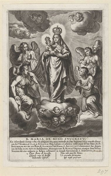 This engraving was made by Abraham Bosse for the year 1639. The fine lines were achieved by incising an image into a metal plate, which was then inked and pressed onto paper. Engraving was a highly skilled, specialized craft, requiring years of training. The precision demanded meticulous labor; each line carefully carved to create the illusion of depth and form. Bosse, however, wasn't just an artist; he was also an influential theorist who helped to professionalize the printmaking trade. Looking at the print's imagery, consider the parallels between the skilled labor of the printmaker and the symbolic act depicted: Louis XIII and Anne of Austria entrusting their kingdom to the Virgin Mary. Both are acts of devotion, investing labor and faith in a higher power. In this context, the print itself becomes an offering, a testament to the power of craft and belief intertwined. It reminds us that even seemingly straightforward images are born from skilled work and deep cultural values.