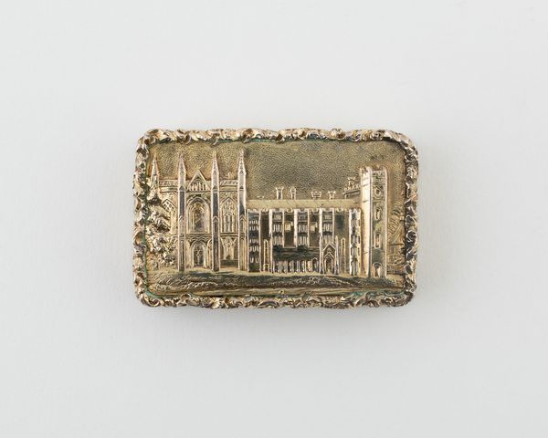 Curator: This delicate object is a vinaigrette in the shape of a book, created by Samuel Pemberton around 1818 or 1819. It resides here at the Art Institute of Chicago. Editor: Immediately striking! The book form contrasts intriguingly with the overall daintiness of it; I'm also noticing the silvery material and tiny, almost fragile details. It feels like a precious secret. Curator: The silver body is indeed ornamented with fine grape motifs. Pemberton expertly crafted this functional piece, designed to hold a sponge soaked in aromatic vinegar or perfume. It’s essentially a fashionable, personal air freshener for the early 19th century! Editor: Ah, now I see! It’s an interesting blend of ornamentation and practical craft. You know, the vine motifs have associations with classical imagery but I wonder about the silversmithing process itself – what sort of labour went into producing such intricate decorative work, given its relatively small size and functional use? Curator: A keen observation! The decoration, despite its intricacy, could have been achieved through techniques like chasing and engraving on relatively soft metal, with a specialist silversmith or workshop fulfilling commissions in specific forms; it's both visually dense and structurally clear. Note, also, the placement of the polished surfaces drawing our eye through the complex, almost claustrophobic grape vines. Editor: The contrast really enhances it. So much labour goes into an object that is ultimately…functional. Who produced the raw silver? What were the working conditions in Pemberton's workshop? And how was such a seemingly minor luxury reflective of wealth distribution at that moment? Curator: Absolutely. This vinaigrette stands as both a work of artful composition and a material artifact steeped in the history of its manufacture and usage. Editor: I'll admit, looking at its materiality has allowed me to interpret the artistic details differently. It's more than a romanticized miniature now—it's the crystallization of numerous social and economic factors. Curator: I'd say this exchange has revealed that artfully rendered design and questions of material and labour needn’t be mutually exclusive categories. Editor: Agreed; understanding the method of making offers unique perspectives to appreciate the aesthetic decisions, for sure.