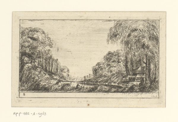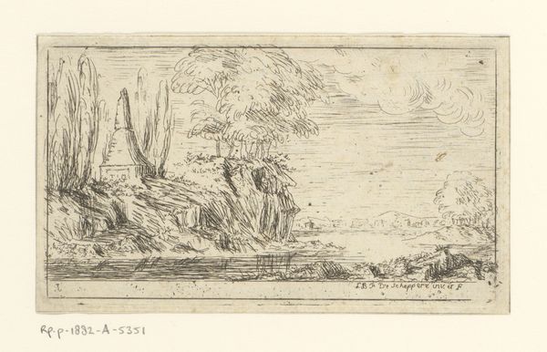 This landscape with a tomb to the right of a bridge was made by Louis Benoît Ferdinand de Scheppere, likely in the late 18th or early 19th century, using etching. Look closely, and you can see how the linear quality of the etching process perfectly suits the subject. The artist has used the incisive lines to capture every detail of the scene, from the rough texture of the trees to the smooth surface of the water. The etching process involves covering a metal plate with a waxy, acid-resistant layer, and the artist scratches away the lines of the image through this layer, exposing the metal. Then, acid is applied, which bites into the exposed lines. The plate is inked, and then printed. It's a process that demands skill, precision, and physical labor. The resulting print invites us to consider the relationship between nature, culture, and mortality. It reminds us that even in the most idealized landscapes, death is always present. By emphasizing the material and making of the print, we can appreciate not only the artistry of the image, but the social and cultural context in which it was created.