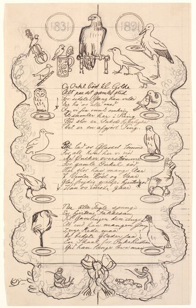 Curator: Isn’t it captivating? "Nietigheid van 's Menschen Leven"—"The Vanity of Human Life"—a title as bold as the artwork itself, conceived anonymously between 1700 and 1800. It’s an engraving, brimming with symbols… it almost feels like a poem captured in ink. Editor: My first impression is somber. The old engraving style, with all its intricate details, reinforces the transience it depicts. The stark contrasts create an immediate sense of… finality, I suppose. Curator: Precisely. See how the scenes cycle? We have images of worldly ambition, of burgeoning life, and the ever-present specter of death. A winged skeleton wields a scythe, a memento mori with a skull and crossbones, an hourglass and sundial marking time…it’s all there to remind us of our fleeting existence. Editor: The framing text certainly drives the point home. What strikes me is how relentlessly Eurocentric this particular brand of "vanitas" can be. It’s so focused on individual salvation, often overlooking the broader systemic factors that render life particularly "vain" for some. The implication seems to be that all worldly striving is pointless because death comes for everyone, regardless. Curator: Ah, but the artistic value lies in its directness. Consider how each scene offers a tangible visual meditation, an exercise for the viewer to reflect. Look at the detail in each circular vignette: each is full of hidden meanings and a kind of warning! I read it less as fatalistic, more as encouraging one to strive beyond mere existence toward genuine value. Editor: It’s undeniably thought-provoking. However, seeing such allegories within the context of historical power structures makes me uneasy. This wasn’t just a harmless contemplation of mortality; it justified inequalities, distracting from genuine political action that could address societal issues and the very real, material suffering of the masses. It is worth pondering for a contemporary audience, even as we grapple with issues of ecological disaster and societal injustices. Curator: A valid counterpoint, certainly. Perhaps art serves not to solve, but to continuously pose complex questions to the observer! This artwork, with all of its detail, almost seems to ask, "Are you living deliberately?". Editor: A question that clearly still resonates today. It speaks to the role of the viewer, who can engage with these objects from a diverse contemporary vantage.