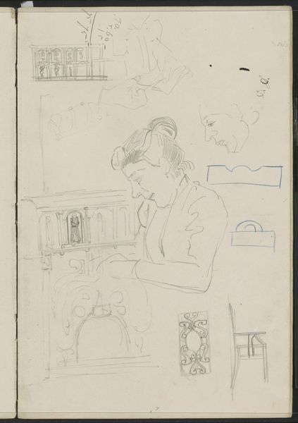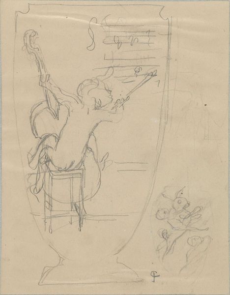 Editor: This is William Roberts' drawing, Oboe Players. It's a pencil sketch, and I find the figures oddly stiff. What do you see in this piece? Curator: Notice how the grid underlays the entire composition. It's a symbol of order, perhaps imposed on the musicians and their environment. Does the music they create break free from this rigid structure, or is it equally constrained? Editor: That's fascinating! I hadn't considered the grid as a symbol itself. Curator: Consider also the window behind them: are those bars? Or merely the winter branches of a tree? These symbols hint at confinement, but also a reaching toward something beyond. Editor: The symbolism makes it much more compelling. Thanks for pointing those things out.