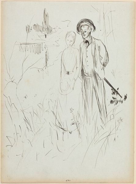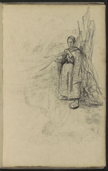 Willem Witsen rendered this drawing of a farmer, possibly with a rake, using graphite on paper. The softness of the graphite allows for a wide range of tonal variation, from the lightest grays suggesting open sky, to the darkest shadows defining the figure’s dress and the earth she stands upon. The very act of drawing, with its direct contact between artist and surface, highlights the inherent qualities of the materials. Witsen employed hatching and cross-hatching, building up layers of graphite to create depth and volume, particularly in the dense strokes delineating the soil. Consider how this mode of mark-making embodies a certain ethos, very different from the smooth finish of an academic painting. Here, we have a celebration of labor, both the farmer’s and the artist’s. Both are engaged in a process of physically working the earth, in their own ways. Appreciating the labor of the artwork underscores the connection between art and wider social issues, blurring the boundaries between fine art and the everyday.