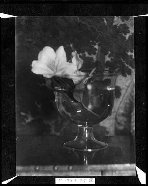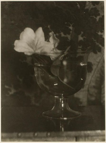 Adolph de Meyer made this photograph of a still life using light and shadow. It’s a quiet, almost ghostly image; the kind that makes you want to slow down and just breathe. Look at how the light interacts with the glass and the water inside. The way the dark stems blur within the glass, and the flower seems to droop with a delicate weight, gives the whole scene a transient feel, like a moment captured mid-breath. The surface it sits on is almost featureless, and the lighting is soft, creating an effect like it's fading in or out. It’s a reminder that beauty can be found in the simplest of things, and that sometimes, the most powerful statements are the ones whispered, not shouted. This feels like a cousin to the work of artists like Gerhard Richter, or even some of the early Impressionists, who were all trying to capture the fleeting, ephemeral qualities of light and experience.