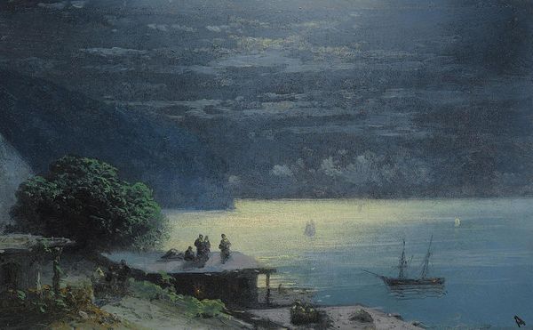 Curator: Aivazovsky’s “Malakhov Hill,” painted in 1893 using oil paint, presents a striking panorama. What do you make of it? Editor: The vastness is what strikes me. The immense sky, the hazy city... it feels incredibly still, almost suspended in time despite whatever turmoil it depicts. The paint is thickly applied, especially in the foreground. You can see the texture and how he worked with it, layer upon layer. Curator: Indeed. That stillness speaks volumes, doesn’t it? This scene recalls the Crimean War siege. The strategic Malakhov Hill looms over Sevastopol, embodying fierce conflict, a history palpable in its cultural memory. Editor: I am curious to think about Aivazovsky's process here, and how the realities on the ground informed it. Plein-air painting adds such an interesting dynamic, almost performative, especially considering the scope. He needed to find a balance between material immediacy and capturing epic narratives. Curator: That immediacy connects to its Romantic leanings, despite also flirting with realism. Notice the symbolic weight of the soldier figure overlooking the vista. What stories do his stance and dress convey about loss, resilience and power? Editor: I think this romanticism comes in part through its relationship to landscape. It does make me wonder how reliant he was on pre-mixed colours for his tones versus hand mixing—impacting production, reception and aesthetics of landscape at the time. Curator: Consider Aivazovsky’s position within both artistic and imperial structures. His seascapes flattered Russian naval power, creating continuity of power through mythologized views. He carefully balances these roles. Editor: Absolutely, it prompts a complex engagement for modern audiences—balancing respect for his technical skill and recognition that paintings don’t happen in a vacuum. Art both makes and hides material and cultural relations. Curator: His treatment of sky and sea here as visual allegories of fate feels intensely personal. It prompts consideration of national identity, trauma, and the sea's enduring symbolism through artistic license and cultural touchstones. Editor: It pushes me to consider all the unseen hands that went into the canvas, the grinding of the pigments, the sailors depicted on ships out at sea, all interconnected. A powerful, albeit unsettling image, nonetheless.