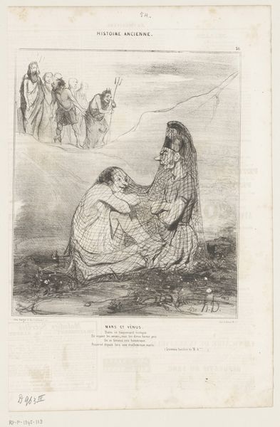 Editor: This is "Illustration til Kennedy, Anna Ross" by Johan Frederik Rosenstand, sometime between 1820 and 1887. It’s an ink drawing and woodcut. The main figure seems lost in thought. What strikes you most about this image? Curator: Immediately, the seated figure evokes a sense of introspective isolation, doesn't it? The composition is quite striking. She seems to be on a ship. Considering this is an illustration, can you infer any possible narrative elements? What memories might the artist have drawn upon when deciding to add these figures and details? Editor: It seems like she could be the main character from a story, maybe waiting for something, while life continues around her. Curator: Precisely. Rosenstand is tapping into a rich tradition of the "wandering soul" motif. Observe how the light and shadow emphasize her contemplation versus the active background. Notice her downcast eyes and the book she holds. The image speaks of internal struggles externalized against the expansive ocean – a symbolic representation of the journey of life. How do you perceive the relationship between the foreground and background figures? Editor: The background feels very distant and detached from her personal struggles. It creates an interesting contrast. I also now see the seagull in the sky above her. Curator: Yes! This tiny but powerfully-placed seagull and the open water suggest themes of freedom, but also the endless possibilities of what the journey holds and represents. This adds to the cultural memory by allowing us to ponder this person's potential for change. The visual symbolism resonates with us on a deeper psychological level. Editor: I didn’t think about how the symbols worked together. It’s amazing how much the setting contributes to her character's story. Curator: Absolutely. Visual storytelling can be so rich! Understanding these elements allows us to more fully experience and appreciate the depth of cultural narratives.