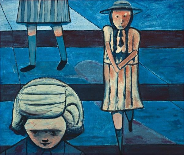 Charles Blackman made this painting, Schoolgirl, using oil on board. At first glance, we see a child, but Blackman obscures her face with a wide-brimmed hat, leaving the viewer to contemplate her presence. What is the public role of art? What are the politics of imagery? What are the social conditions that shape artistic production? Blackman painted this work in Australia. The subdued palette of blues and browns evokes a sense of melancholy, perhaps reflective of the social and cultural norms surrounding childhood in Australia. This suggests a critique of the institutions that shape young lives. The figure's anonymity raises questions about identity and individuality within the context of societal expectations. By examining the social and cultural context of the painting, we gain a deeper understanding of its meaning. Historical accounts and critical analyses can provide valuable insights into the artist's intentions and the reception of the artwork within its time.